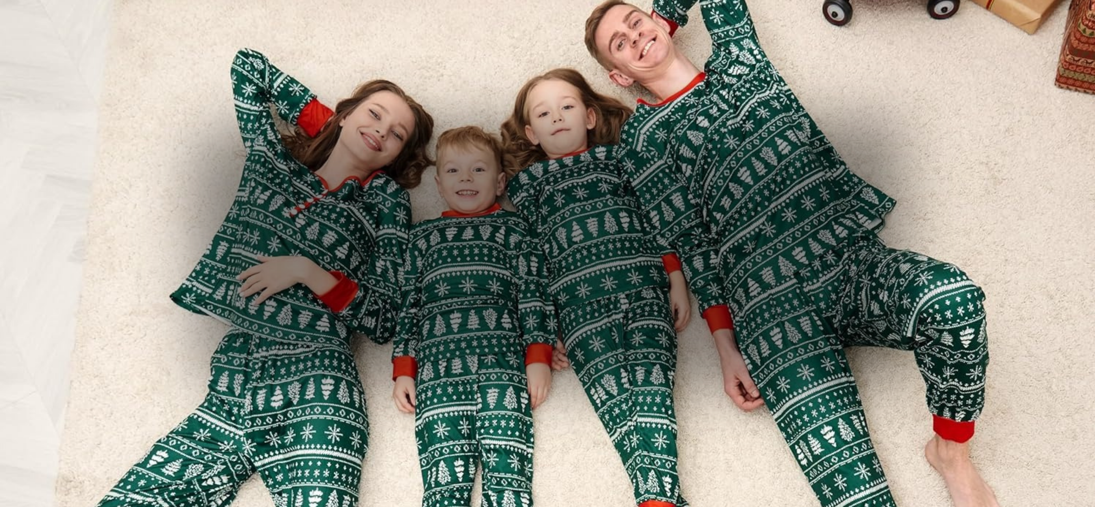 Green & Red Pine Tree & Snowflake Pyjama Set